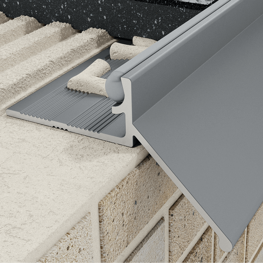 Profile K okapowe to połączenie praktycznych rozwiązań branżowych z możliwością precyzyjnego, ale również estetycznego wykończenia. Kształt profilu został zaprojektowany tak, by można było go zamontować na krawędziach balkonów i tarasów. Specjalny kształt „łezki” od wewnątrz pozwala szczelnie wypełnić zasobnik odpowiednią ilością spoiny elastyczną, która skutecznie zapobiega przenikaniu wody pomiędzy płytki. Pozwala to wyeliminować naprężenia wynikające z różnej rozszerzalności cieplnej materiałów. Profil zabezpiecza też przed kruszeniem się płytek wzdłuż krawędzi.