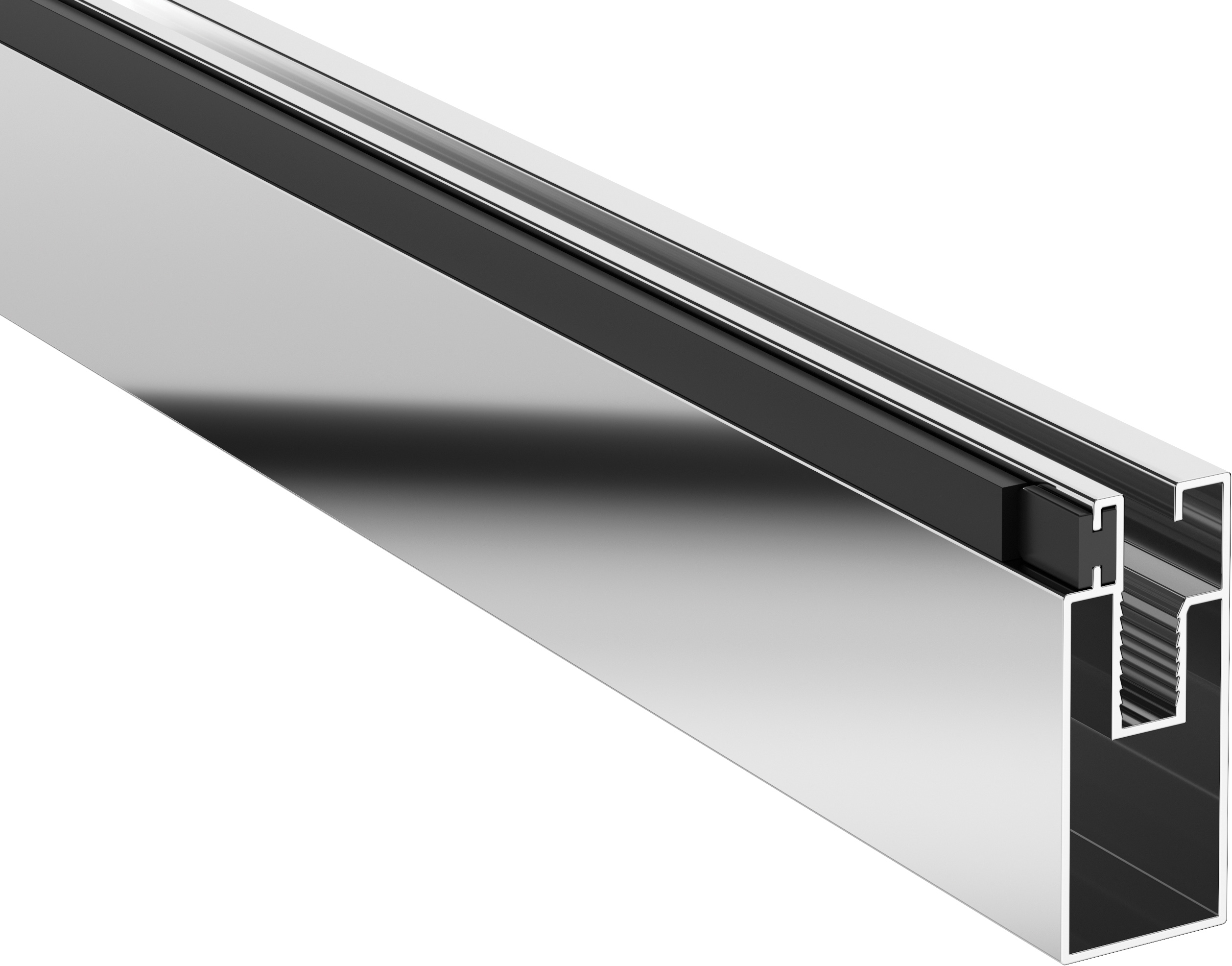 Profil ten należy do systemu Kerria Plus i umożliwia połączenie drzwi przesuwnych ze ścianką walk-in. Takie rozwiązanie stosowane jest przy kabinie narożnej. Profil wykończony jest w błyszczącym chromie i doskonale pasuje do systemu Kerria Plus w wykończeniu chrom.