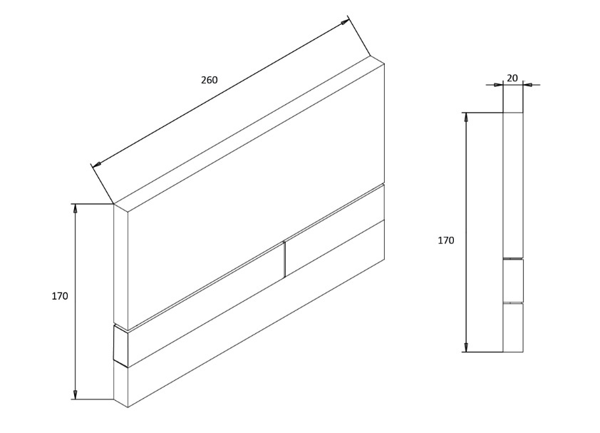 Płyta przyciskowa ma wymiary 26 × 17 × 2 cm i została wykonana z wysokiej jakości stali szczotkowanej, dzięki czemu prezentuje się elegancko i dobrze komponuje się z nowoczesnym wyposażeniem łazienki. Powierzchnia jest łatwa w czyszczeniu i konserwacji.