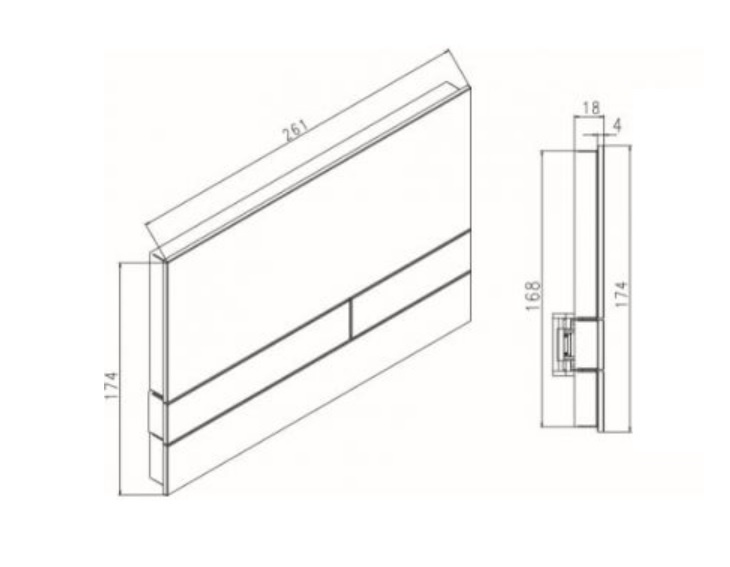 Płyta przyciskowa ma wymiary 26,1 × 17,4 × 1,8 cm. Front wykonany jest ze szkła w kolorze czarnym, natomiast ramka utrzymana jest w wykończeniu czarny mat. Elementy konstrukcyjne wykonane są z tworzywa ABS, co zapewnia trwałość oraz wygodę użytkowania.