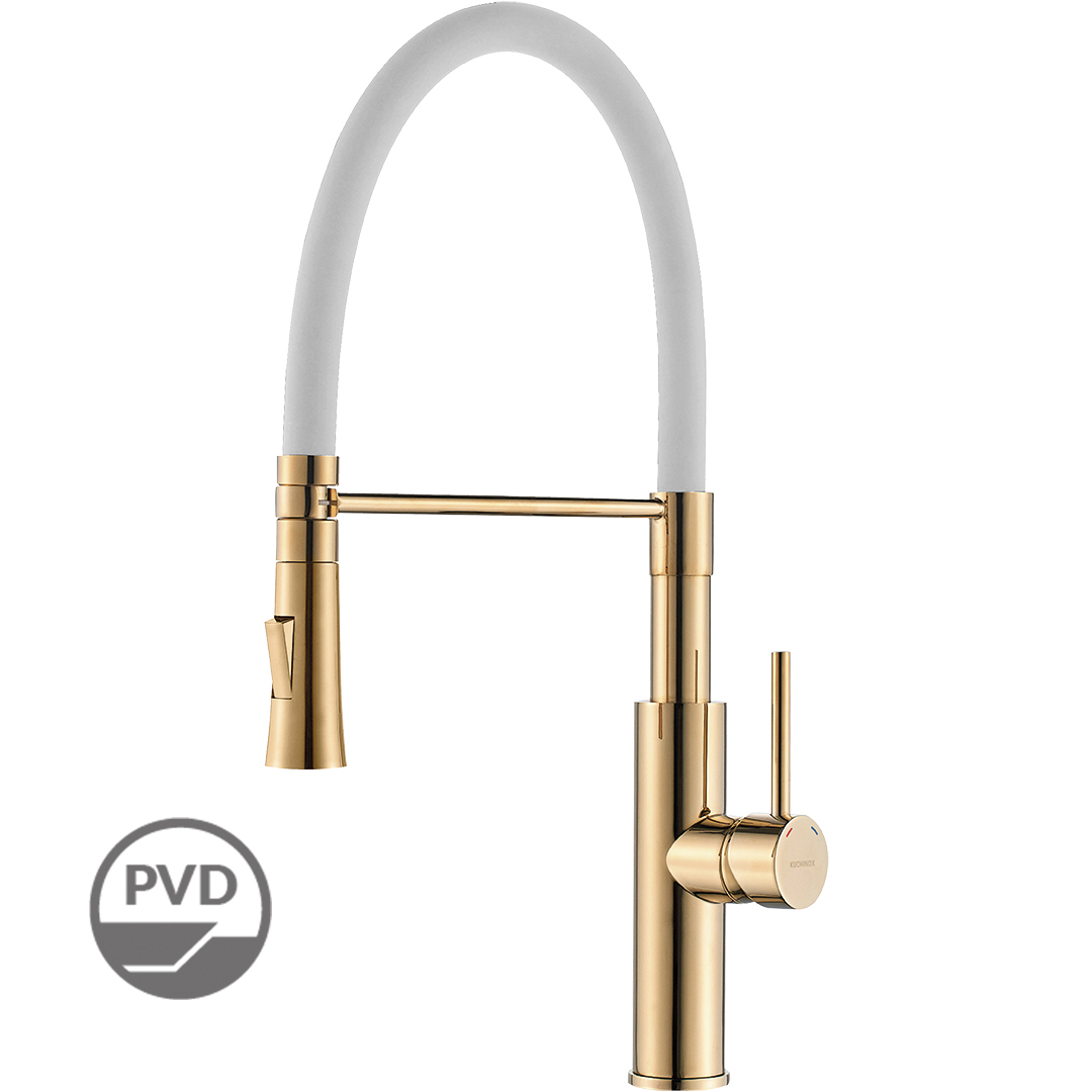 Baterie zlewozmywakowe Shire z ruchomą wylewką oprócz niezawodnej funkcjonalności, charakteryzują się nowoczesnym i eleganckim wyglądem. Baterie wyposażone zostały w głowicę ceramiczną 35 mm oraz elastyczną silikonową wylewkę, która w łatwy sposób pozwala na skierowanie strumienia wody w dowolne miejsce zlewu bądź naczynia. Baterie z serii Shire szczególnie sprawdzą się w kuchniach często eksploatowanych, w których brak zmywarki zmusza do częstszego zmywania czy np. opłukania warzyw. Dwa strumienie ( stały i deszczowy ) w jakie wyposażona jest bateria ułatwiają mycie i przyczyniają się do lepszego komfortu pracy. Baterie zlewozmywakowe z wylewką „U” dostępne są w ciekawych wersjach kolorystycznych tj. całej czarnej, chromie, różowym złocie z czarną wylewką oraz złocie z białą wylewką. Nowoczesny design to podstawowa cecha charakteryzująca baterie Shire.
