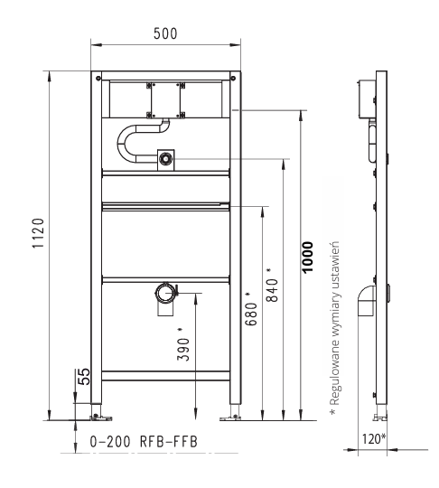 JOMO/WERIT JOMOTech STELAŻ UMYWALKA NIEPEŁNOSPRAWNI H=1120 / MOCOWANIE ARMATURY / SYFON 104-000000002