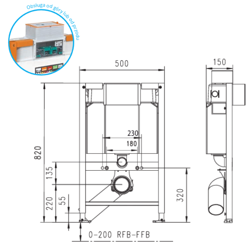 Regulacja wysokości stelaża: 200 mm (dopasowanie do konstrukcji podłogi – RFB-FFB)
