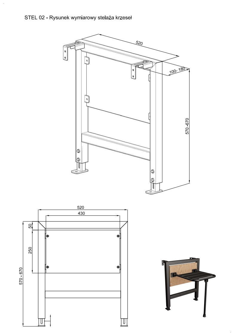 Wymiary stelaża: 520mm x 570-670mm x 100-180mm