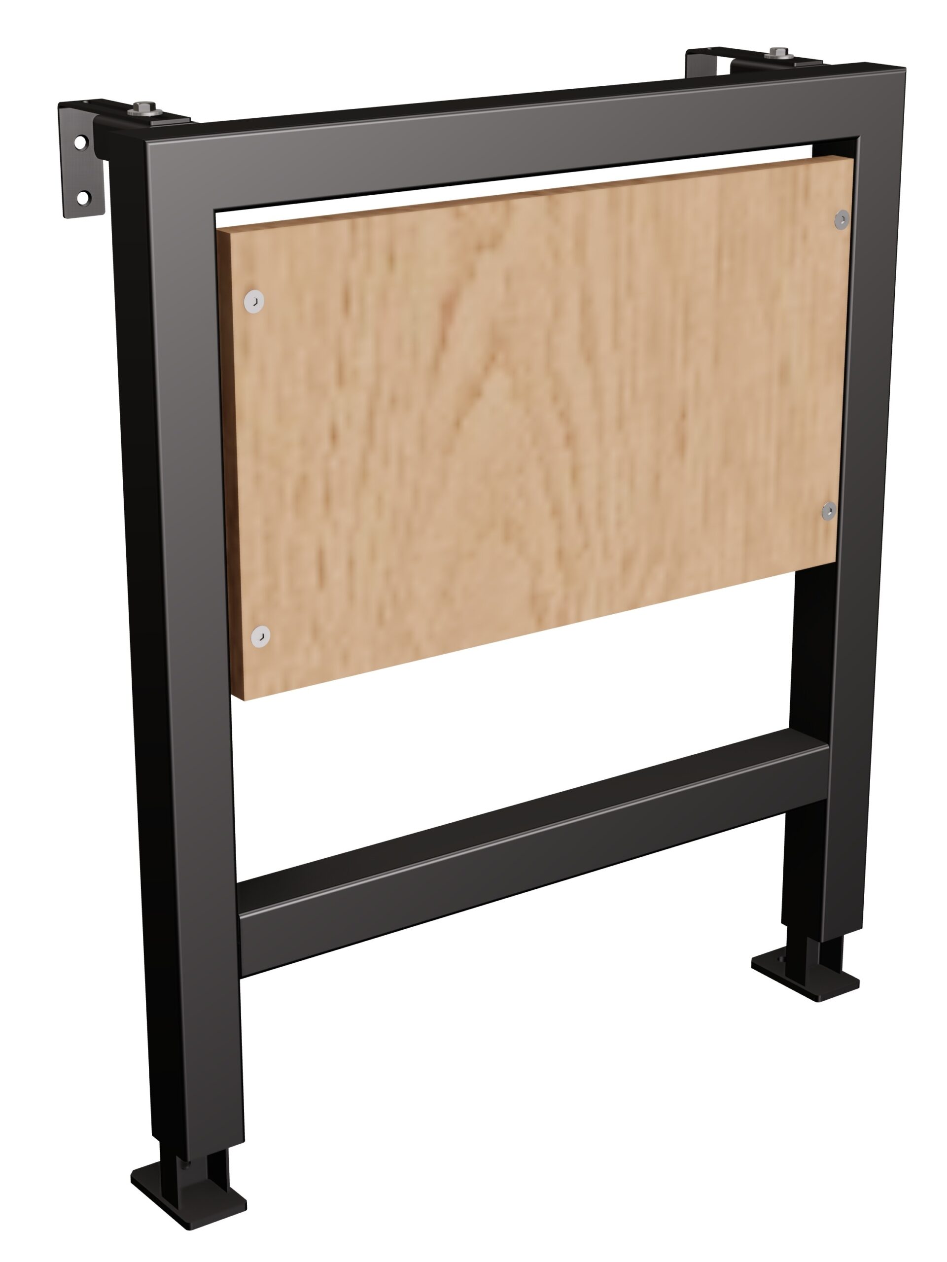 Wykonany jest z malowanej proszkowo stali węglowej w postaci samonośnej ramy, do której przymocowana jest płyta wykonana z wodoodpornej sklejki drewnianej.