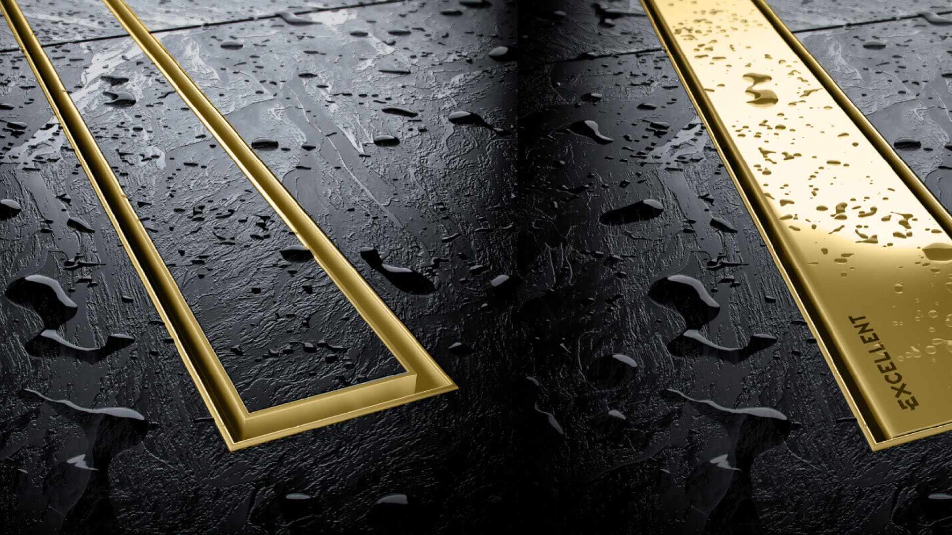 Odpływ liniowy Stilio Gold łączy w sobie minimalizm i praktyczność użytkową. Wykonany został z wysokiej jakości stali nierdzewnej, pokrytej powłoką PVD w kolorze złotym. Odpływ posiada wygodną regulację nóżek w pionie i w poziomie w zakresie do 30mm. Szeroki wybór dostępnych rozmiarów odpływów i wersji rusztu daje możliwość dostosowania do wielkości kabiny oraz wymiarów płytek, co znacznie ułatwia planowanie układu już na etapie projektowania. Produkt polecany jest do instalacji wraz z kabinami Excellent typu walk-in: Fabrika lub Vidoq.