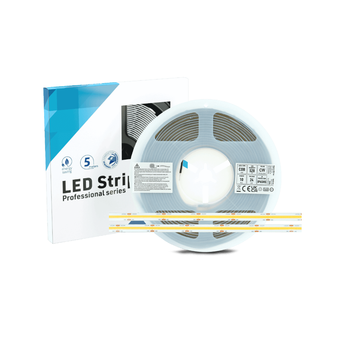 Przy montażu dłuższych odcinków taśmy LED warto wybrać taśmę o napięciu 24V. Pozwoli to na zmniejszenie spadków napięcia, które mogłyby wystąpić przy montażu taśmy 12V. Dodatkowo do montażu taśmy 24V mogą być użyte cieńsze przewody, co pozwoli na łatwiejsze ukrycie ich podczas montażu.