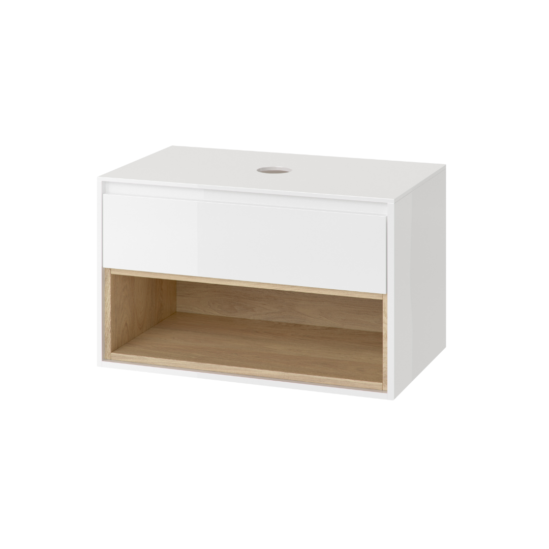 Szafki pod umywalki nablatowe Tuto wykonane są z najwyższej klasy płyt meblowych austriackiej firmy Egger. Dla modeli z jedną szufladą, dostępne są w ofercie płyty koloru: biały lub szary, które w połączeniu z półkami w kolorach: biały, beton lub dąb, nadają wnętrzu ponadczasowej klasy i elegancji.