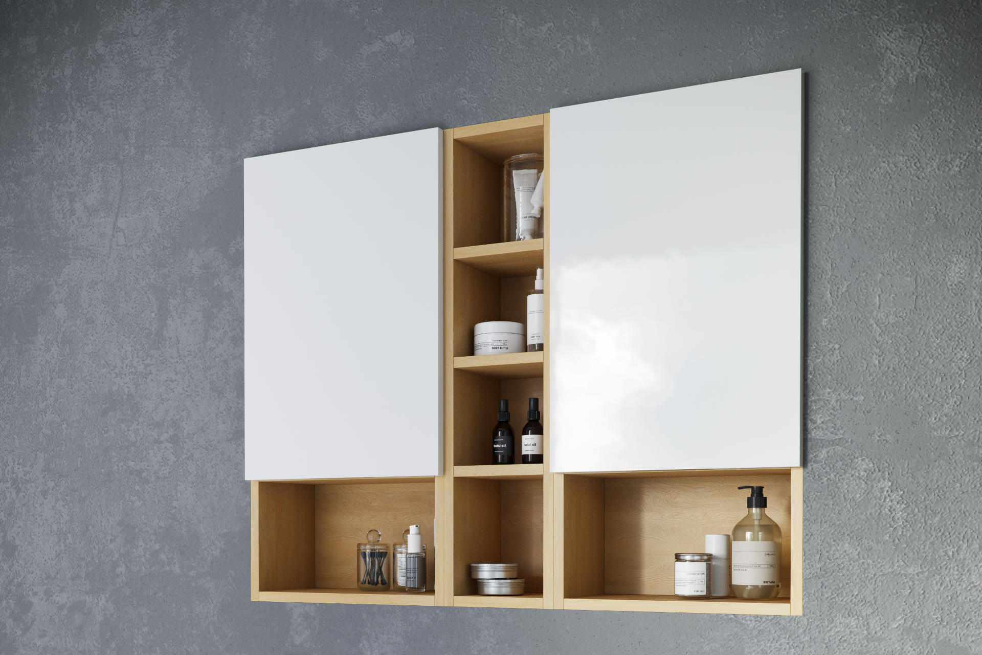 Szafki wiszące z frontem Tuto wykonane są z najwyższej klasy płyt meblowych austriackiej firmy Egger. W ofercie dostępny jest model wykonany w kolorze dębu z frontem (drzwiami) w kolorach biały lakier lub szary. Zastosowane połączenia kolorystyczne nadają pomieszczeniu ponadczasowej klasy i elegancji. Szafki posiadają drzwi z systemem cichego domykania Soft Close.