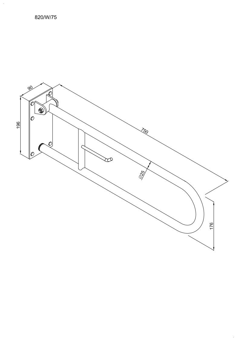 – Wymiary: 90 mm x 196 mm x 750 mm, rura Ø25 x 2