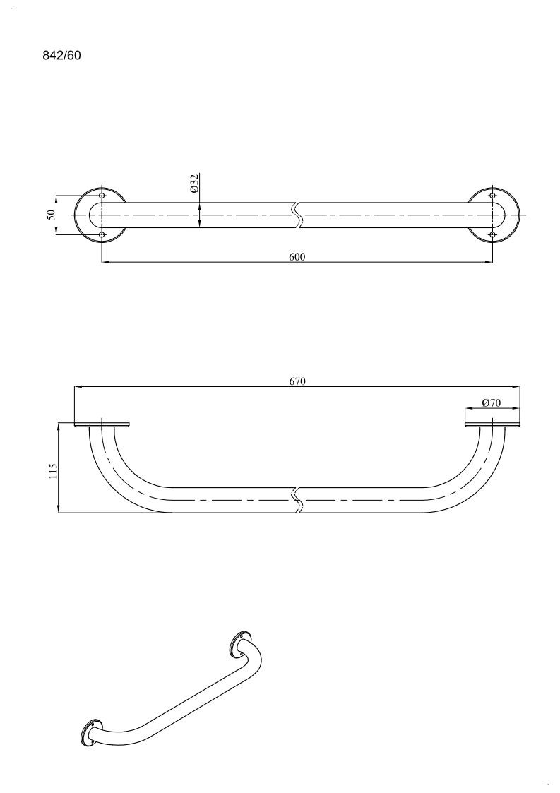 – Wymiary: 670mm x 115 mm x 50 mm, rura Ø32