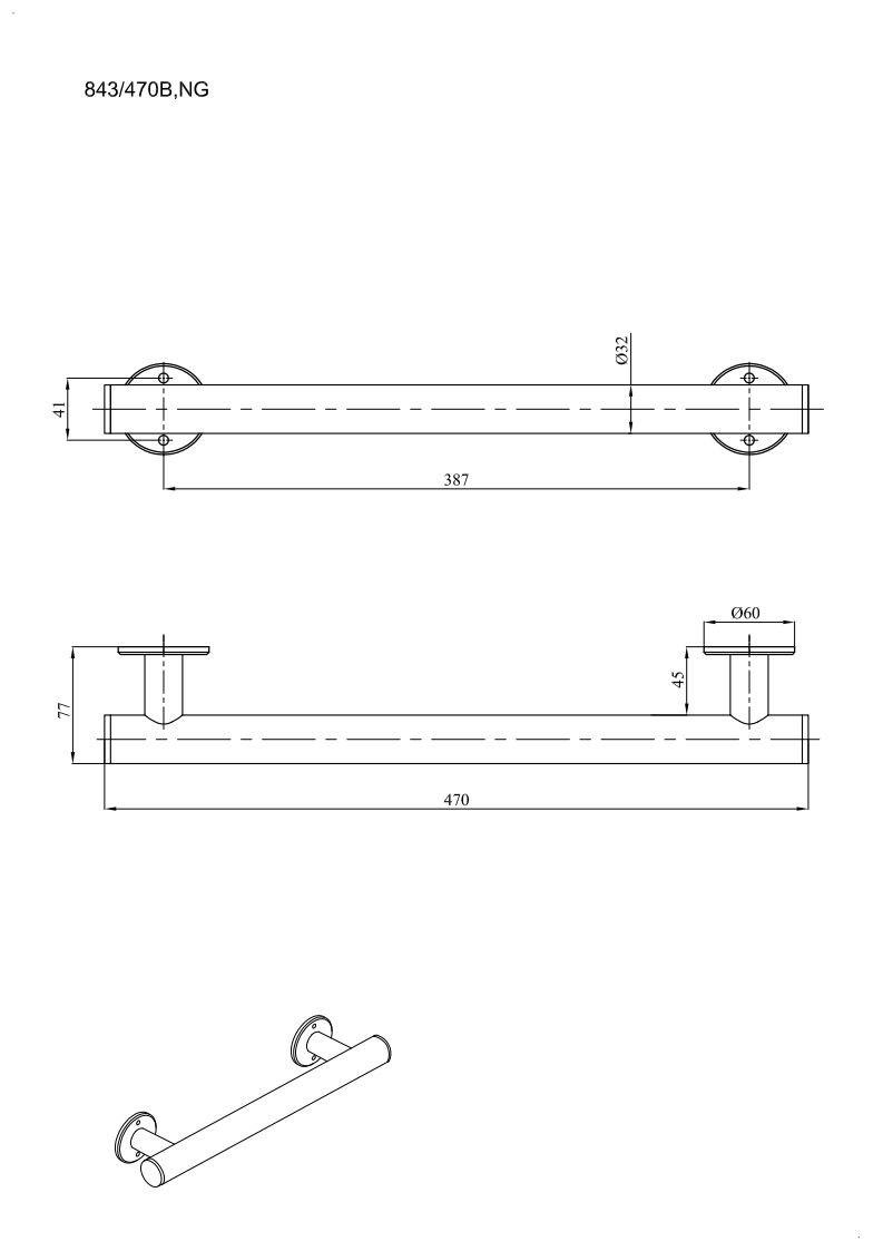 – Wymiary: 470 mm x 60 mm x 77 mm, rura Ø32