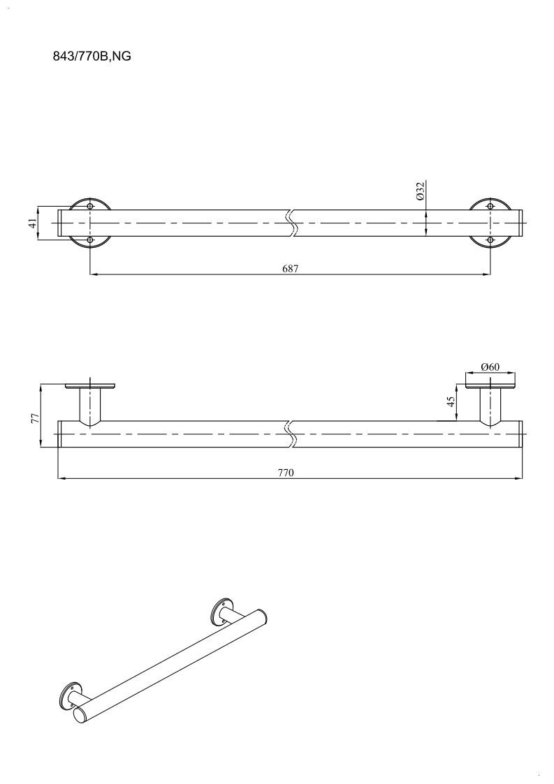 – Wymiary: 670 mm x 60 mm x 77 mm, rura Ø32