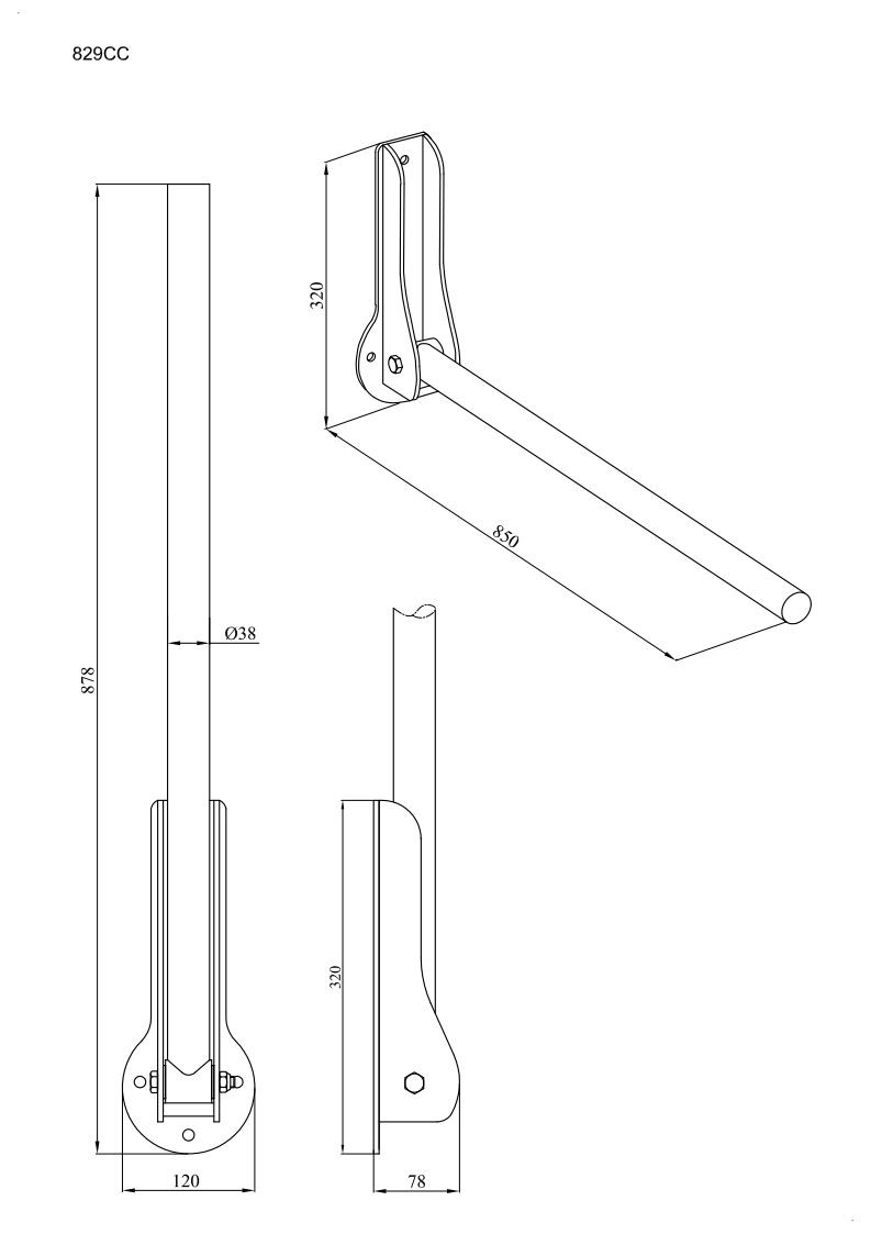 Nazwa produktu: Uchwyt prosty uchylny fi 38mm