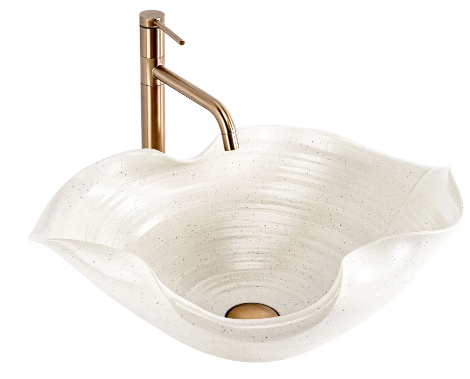 Ten model zachwyca asymetryczną formą inspirowaną liniami muszli. Miękka geometria i płynne przejścia nadają jej lekkości i naturalnego rytmu, który doskonale wpisuje się w aranżacje stawiające na autentyczność – od nowoczesnych łazienek, przez japandi, po wnętrza w stylu spa. Ceramika o matowym wykończeniu i stonowanej, piaskowej barwie tworzy spójną całość z drewnem, kamieniem i minimalistycznymi akcentami.