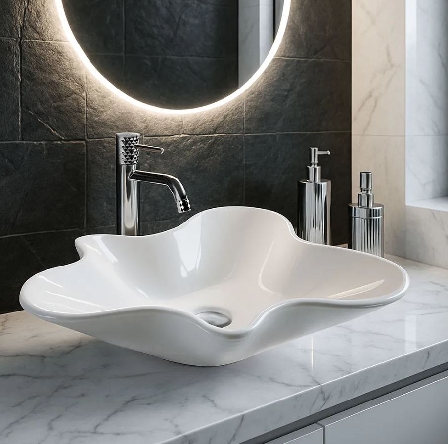 Umywalka nablatowa Izolda to wyjątkowa propozycja dla osób ceniących nowoczesny design i unikalne kształty. Jej nieregularna forma inspirowana naturalnymi liniami sprawia, że stanowi efektowny element dekoracyjny, który odmieni charakter każdej łazienki.