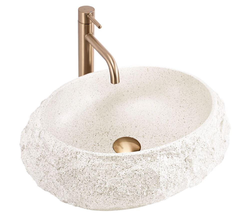 Gładkie wnętrze misy gwarantuje łatwość utrzymania w czystości, a surowa, kamienna faktura zewnętrzna dodaje wnętrzu charakteru i niepowtarzalnego uroku. To propozycja dla osób poszukujących eleganckiego, designerskiego elementu wyposażenia łazienki, który będzie równie praktyczny, co efektowny.