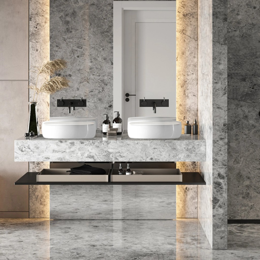 Montaż umywalki nablatowej ALVIO jest szybki i bezproblemowy. Otwór na baterię o średnicy 35 mm umożliwia łatwe podłączenie armatury, a nablatowa forma pozwala na dowolne umiejscowienie na blacie.