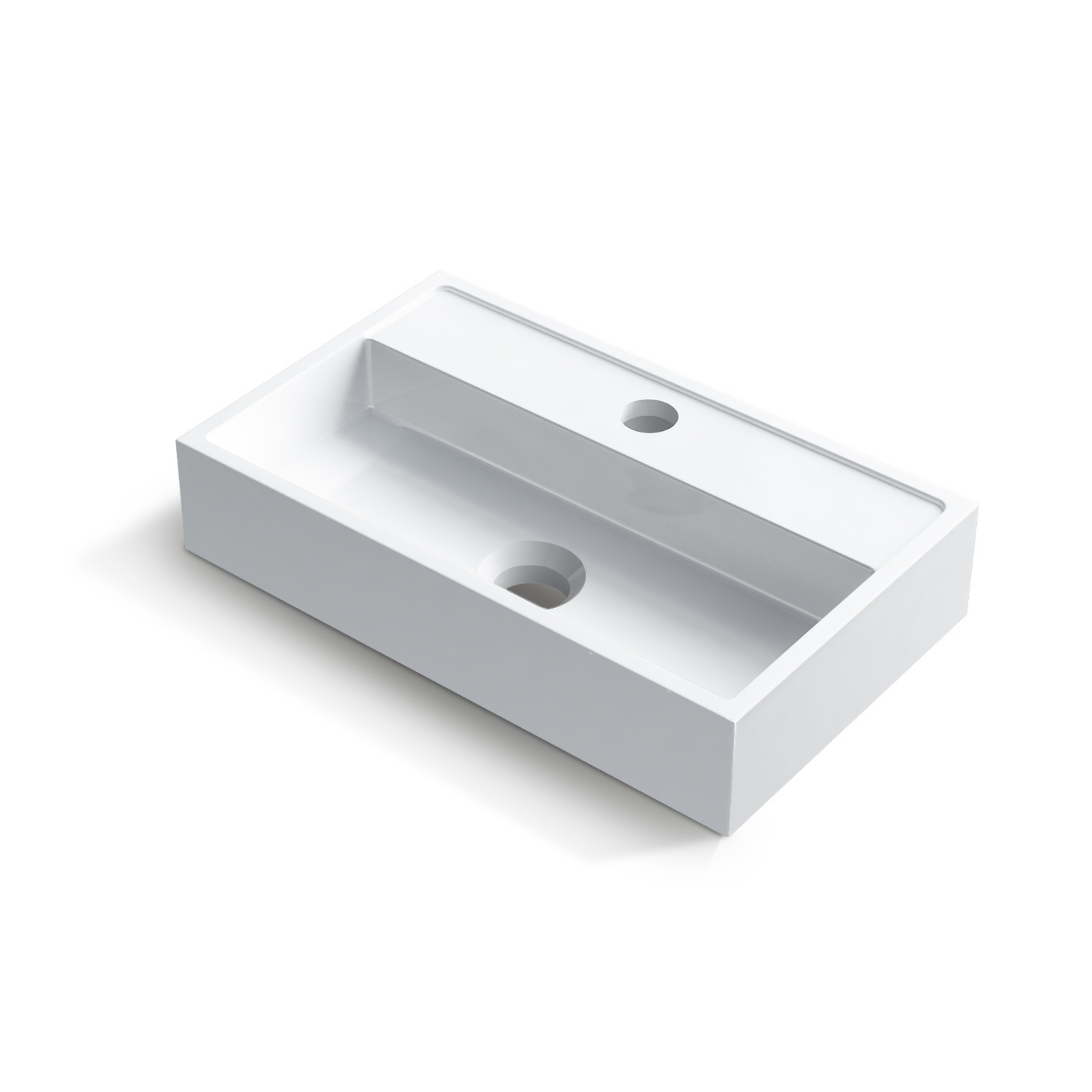 Umywalka nablatowa biała z konglomeratu, to idealne rozwiązanie dla tych, którzy pragną połączyć funkcjonalność z estetyką. Linia VIKI wyróżnia się prostokątnym kształtem o ostrym zakończeniu krawędzi, który wprowadza nowoczesność do każdej łazienki. Tak wyraźnie i ostre kształty zostały uzyskane dzięki konglomeratowi, z którego została stworzona umywalka.