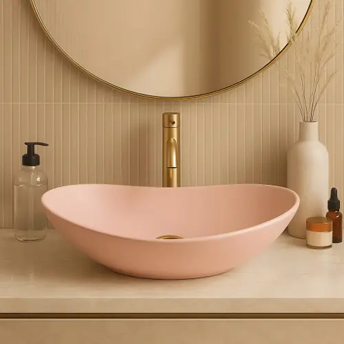 Matowa powierzchnia w subtelnym, pudrowo-różowym odcieniu jest odporna na zarysowania i zabrudzenia, a dodatkowo łatwa w czyszczeniu. Prosta forma oraz delikatny kolor sprawiają, że umywalka nablatowa doskonale podkreśla charakter łazienki i nadaje jej wyjątkowy styl.