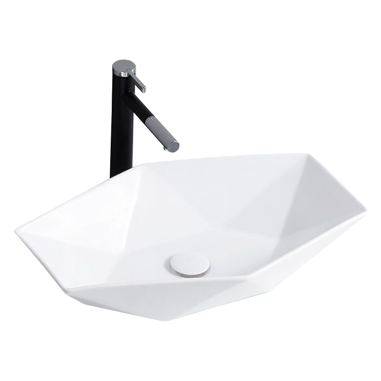 Wprowadź do swojego wnętrza nutę awangardy i luksusu, wybierając naszą umywalkę nablatową Basaro Eurus w eleganckim śnieżnobiałym wykończeniu. To propozycja dla osób, które szukają niebanalnych rozwiązań łączących nowoczesną formę z funkcjonalnością. Wykonana z wysokogatunkowej ceramiki sanitarnej, umywalka wyróżnia się swoim unikalnym, geometrycznym kształtem, który przypomina szlifowany diament, stanowiąc centralny punkt aranżacji łazienki.