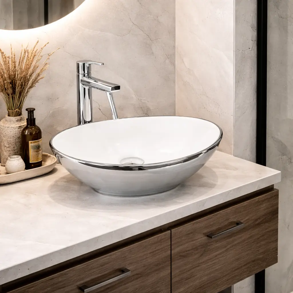 Umywalka nablatowa Hera to doskonały wybór dla osób, które pragną wprowadzić do swojej łazienki element nowoczesnej elegancji. Srebrne wykończenie pięknie kontrastuje z jasnymi blatami, tworząc unikalny efekt wizualny. Wybierając ten model , zyskujesz nie tylko funkcjonalny sprzęt, ale i wyjątkową dekorację, która zachwyci każdego użytkownika trwałością i stylem. Model HERA to nablatowa forma, która tworzy nowoczesny i spójny efekt na blacie.