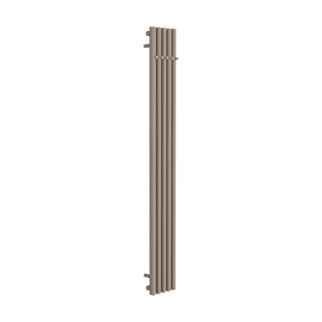 Grzejnik Verdi w kolorze cappuccino to model stworzony z myślą o nowoczesnych przestrzeniach łazienkowych, w których liczy się zarówno wydajność cieplna, jak i dopracowana estetyka. Smukła, pionowa forma o wysokości 180 cm oraz wyraźnie zarysowane profile nadają bryle elegancki, architektoniczny charakter, który doskonale wpisuje się w aktualne trendy aranżacyjne.