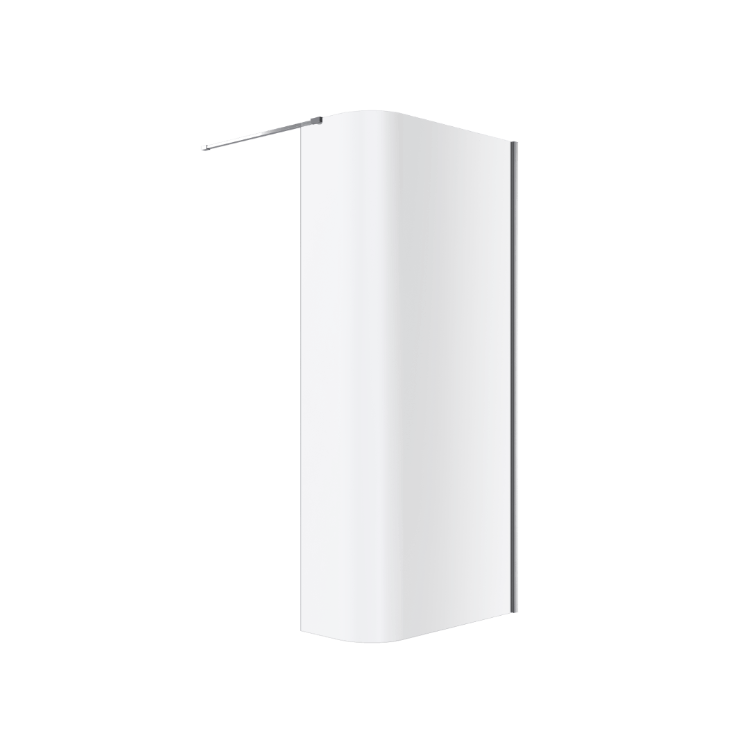 W zestawie znajduje się profil w kolorze chromu z połyskiem, mocowanie do ściany, wspornik stalowy Slim oraz uszczelka zabezpieczająca. Wysokość ścianki bocznej i ścianki giętej to 200cm.
