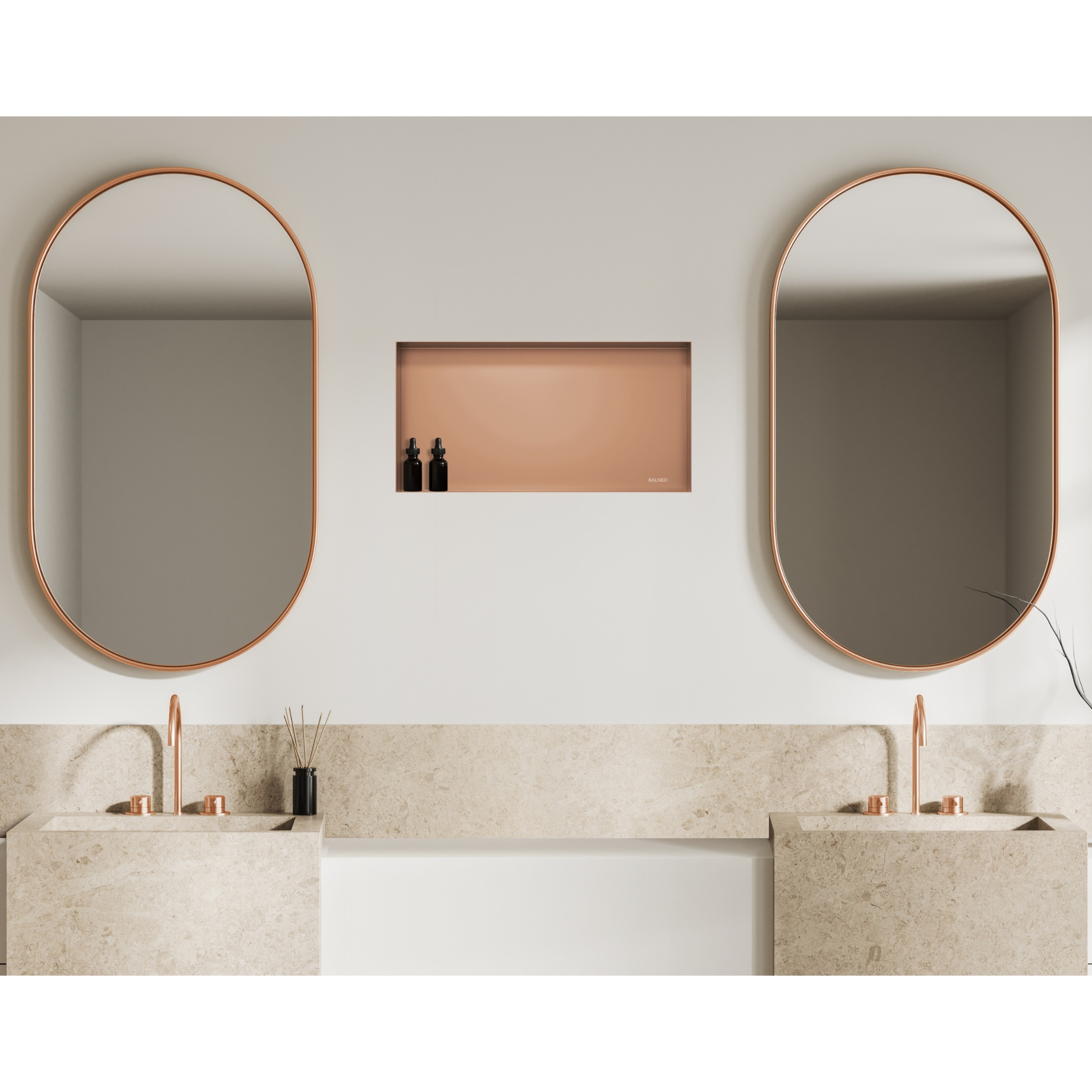 Półki wnękowe WALL-BOX No Rim pozwalają uporządkować przestrzeń w łazience i nadają jej nowoczesnego designu. Na łatwo dostępnych półkach można ustawić kosmetyki, perfumy, a w kabinie prysznicowej – szampony, żele i inne artykuły kąpielowe.