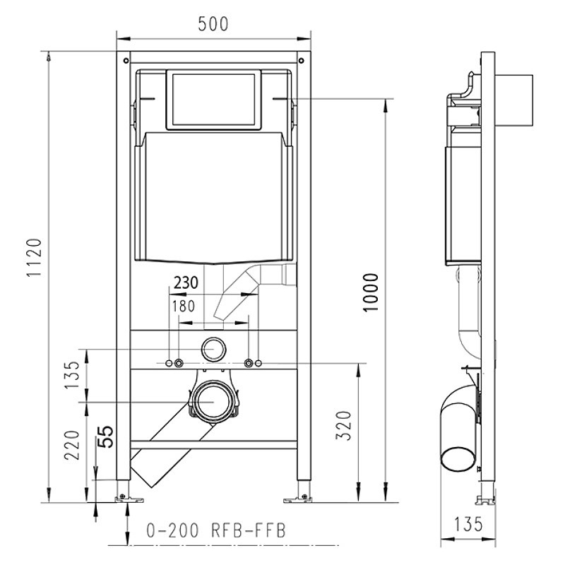 JOMO/WERIT JOMOTech STELAŻ WC H=1120 / SZEROKOŚĆ 450 / DN90 / REDUKCJA 90/110