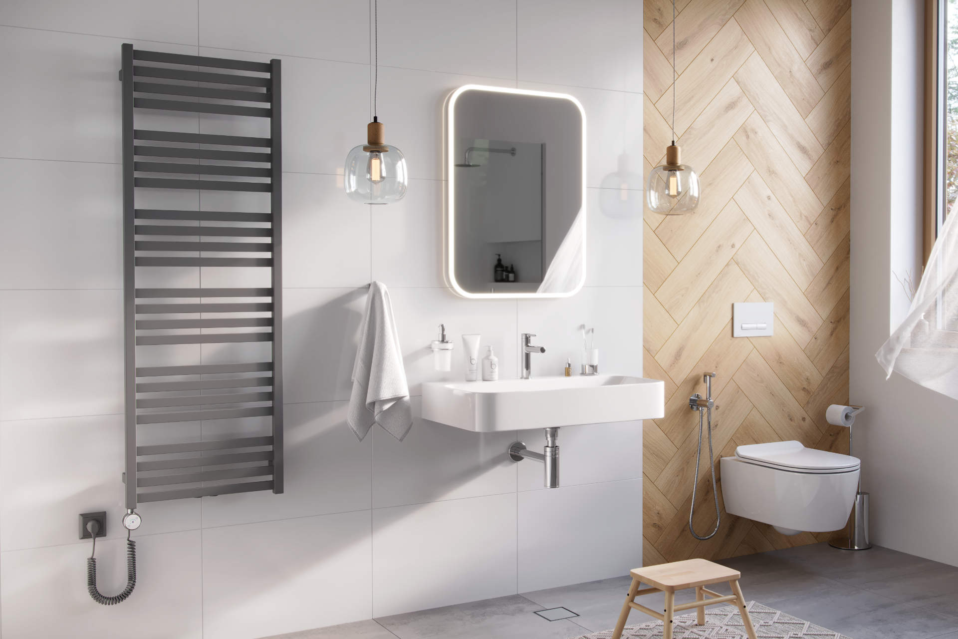 Grzałka elektryczna stanowi funkcjonalne uzupełnienie do grzejnika. Może działać w połączeniu z grzejnikiem podłączonym do instalacji centralnego ogrzewania lub pracować zupełnie niezależnie od sieci c.o., nadając grzejnikowi funkcję całorocznej suszarki na ręczniki.