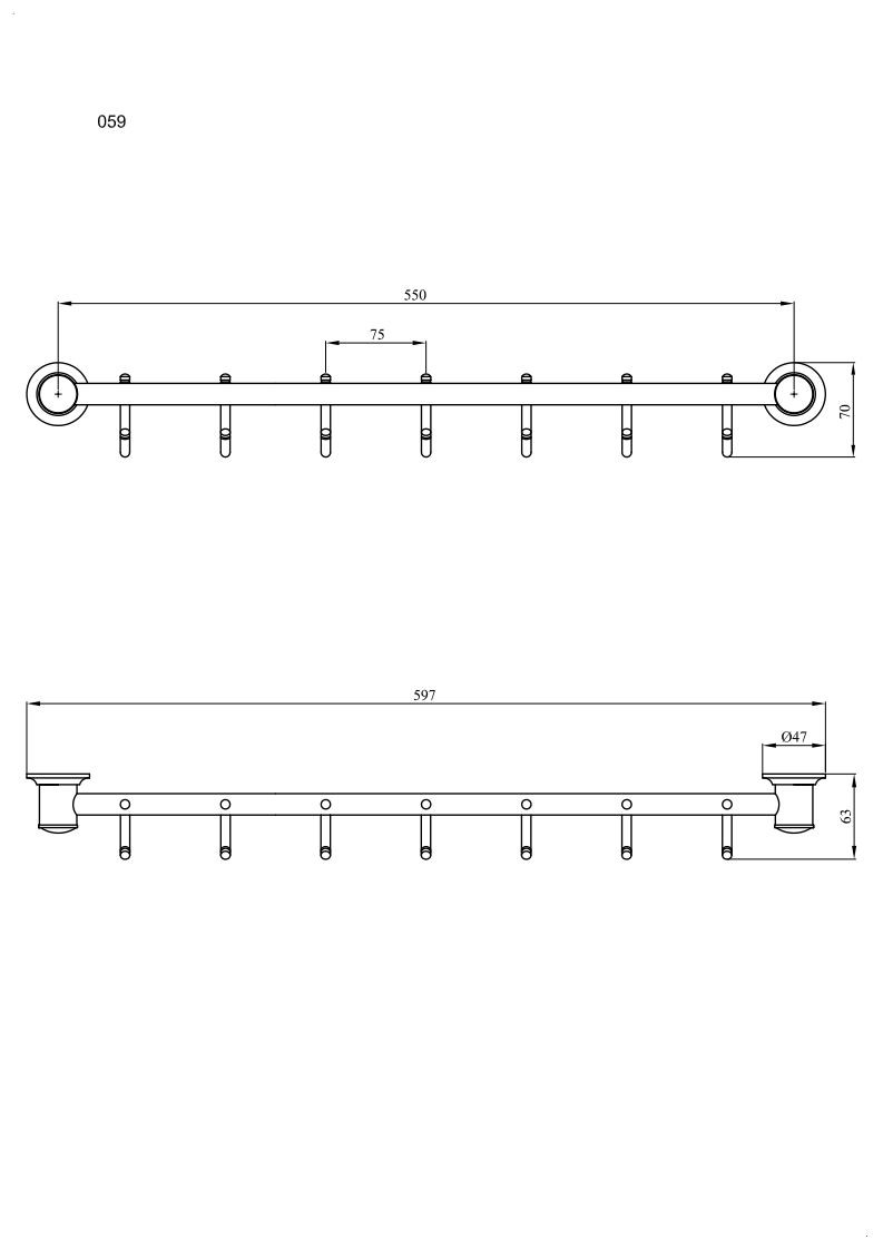 – Wymiary: 597 mm x 70 mm x 63 mm