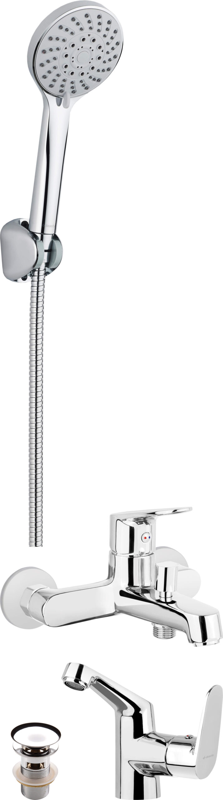 Zestaw baterii łazienkowych zawiera wszystko, czego potrzebujesz, urządzając swoją łazienkę. Spójna stylistyka elementów podniesie walory wizualne pomieszczenia. Wybierając komplet, otrzymujesz wysoką jakość produktów, elegancki design i staranne wykończenie. Cały zestaw wannowy składa się m.in. z baterii, wylewki, słuchawki, korka, drążka, węża, przyłączy. Wbudowane aeratory i kryzy zmniejszające przepływ odpowiadają za niższe zużycie wody i w konsekwencji niższe rachunki. Każdy element łatwo wyczyścić, między innymi dzięki antyosadowemu systemowi Anti-Calc.