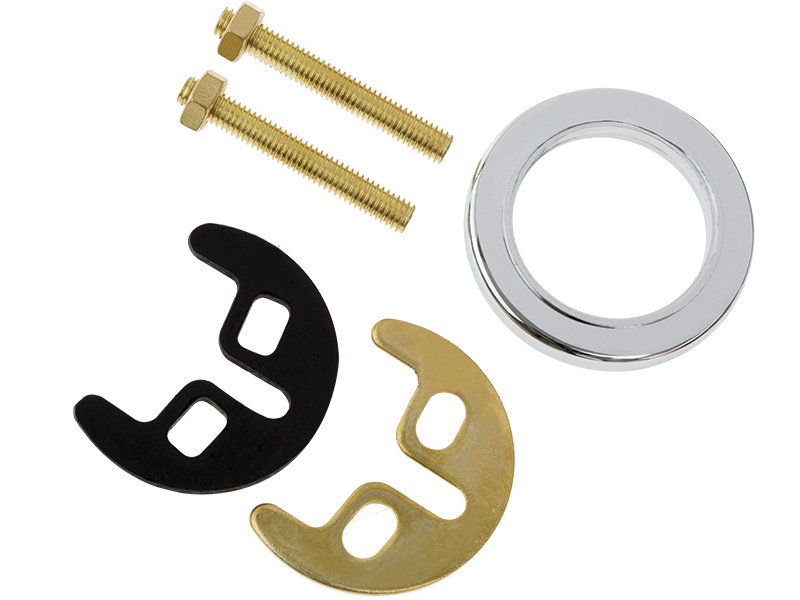 Zestaw mocujący z 2 bolcami i pierścieniem o średnicy 35 mm to uniwersalne rozwiązanie do solidnego montażu baterii łazienkowych i kuchennych. Zapewnia stabilne i trwałe osadzenie armatury na umywalce, zlewozmywaku lub blacie, minimalizując ryzyko jej przesuwania się podczas użytkowania. Dzięki standardowym wymiarom zestaw pasuje do większości dostępnych na rynku baterii stojących, gwarantując łatwą i szybką instalację.