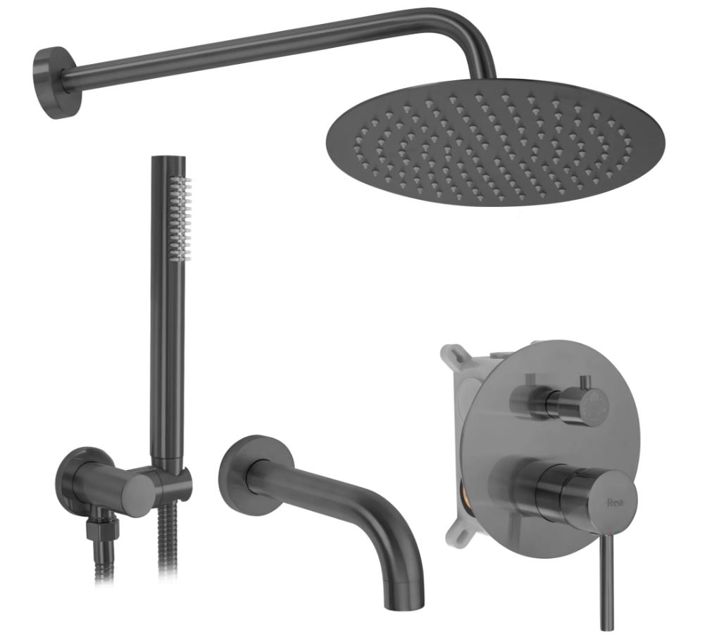 REA ZESTAW NATRYSKOWO-WANNOWY Z WYLEWKĄ LUNGO CZARNY REA-P4112