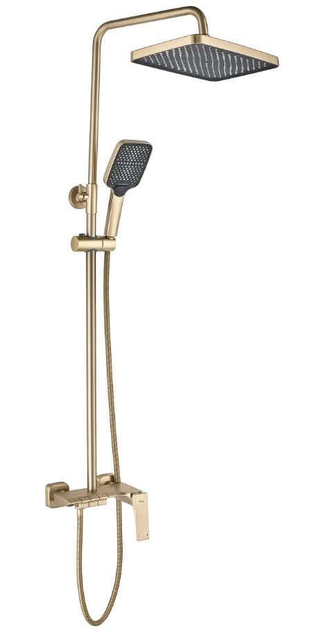 Zestaw prysznicowy natynkowy Joe Złoty Szczotkowany to idealne połączenie minimalistycznego designu z maksymalną funkcjonalnością, które doskonale wypełni przestrzeń Twojej łazienki, zachowując nienaganny wygląd. Zestaw został wykonany z wysokiej jakości materiałów – mosiądzu i ABS, co gwarantuje trwałość, komfort i bezpieczeństwo użytkowania.
