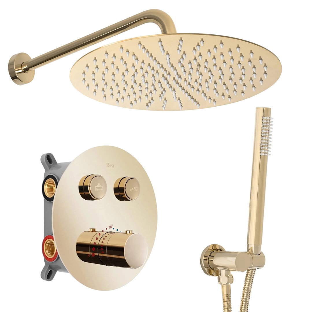 REA ZESTAW NATRYSKOWY PODTY LUNGO DIAMOND ZŁOTY + BOX REA-P6964
