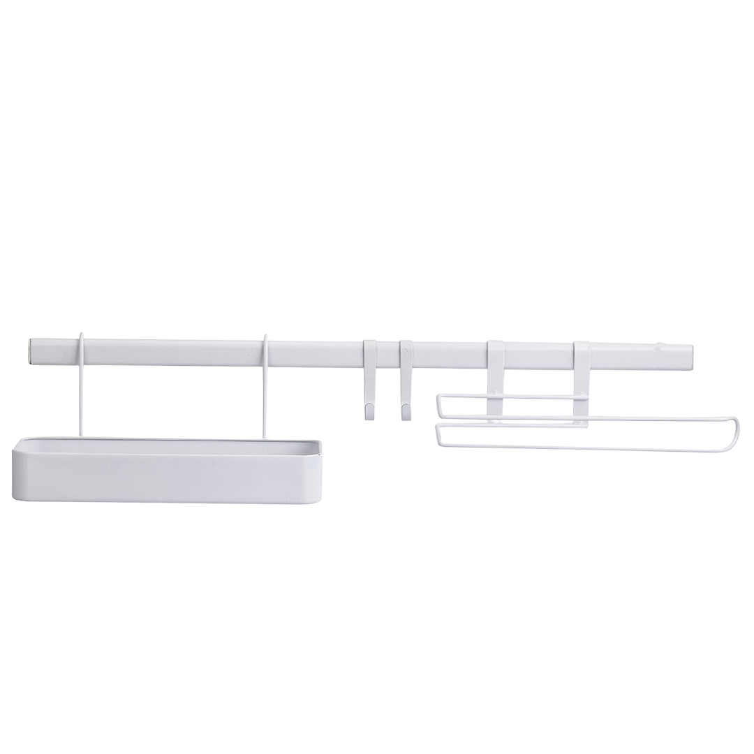 Relingi z wysokiej wytrzymałości stali oraz akcesoria stanowią nieodzowny dodatek wyposażenia kuchni o niewielkich gabarytach z dużą ilością szafek. Szeroka gama modeli w łatwy sposób pomoże nam uporządkować zarówno przybory kuchenne, jak i inne rzeczy obowiązkowo znajdujące się w naszych szufladach. Zyskujemy więcej wolnej przestrzeni na kuchennym blacie, dzięki możliwości stworzenia zestawu według własnej kompozycji. Wszelkie pojemniki, póki, wieszaki, uchwyty oraz półki na ręcznik papierowy można skomponować z relingami występującymi w różnych rozmiarach poprzez zawieszenie ich specjalnych haczykach czy bezpośrednio na relingu. Kolekcja dostępna jest w różnych wykończeniach kolorystycznych.