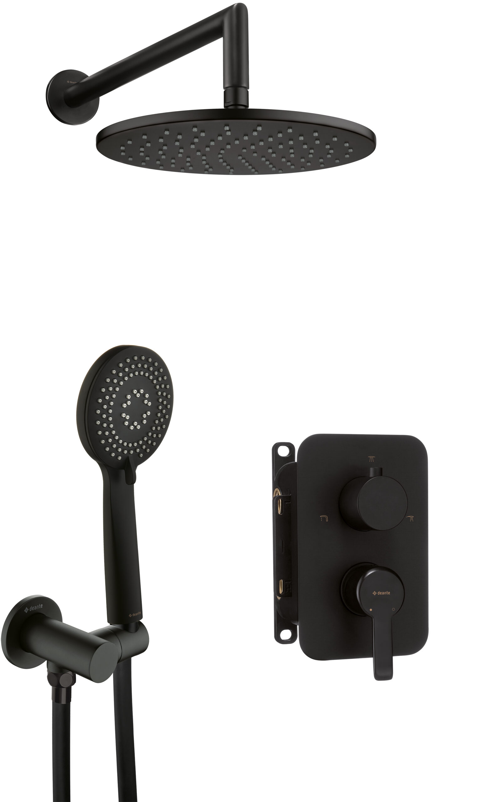 Zestaw prysznicowy składa się z BOXa mieszaczowego, deszczowni i słuchawki wraz z uchwytem i wężem. Montaż podtynkowy wyróżnia się nowoczesnym designem i wyjątkową estetyką. Zarówno słuchawka, jak i deszczownia wyposażone zostały w system anti-calc, dzięki czemu są łatwe do utrzymania w czystości. Czarne matowe wykończenie sprawi, że twoja łazienka nabierze elegancji. Kupując zestaw masz pewność, że wszystko idealnie do siebie pasuje.