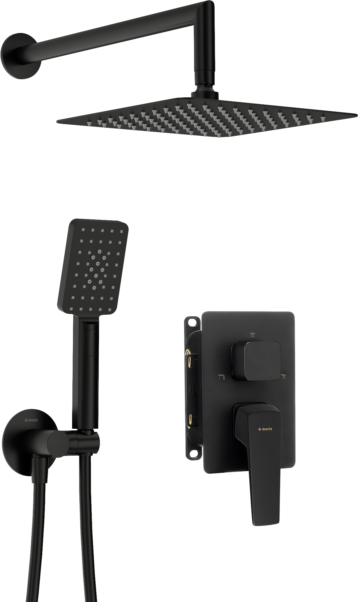 Nowoczesny zestaw prysznicowy z montażem podtynkowym zapewnia komfort codziennej kąpieli i estetyczny wygląd łazienki. W skład kompletu wchodzą: BOX mieszaczowy z 3-funkcyjnym przełącznikiem, deszczownia o średnicy 25 cm, słuchawka natryskowa z uchwytem oraz wąż.