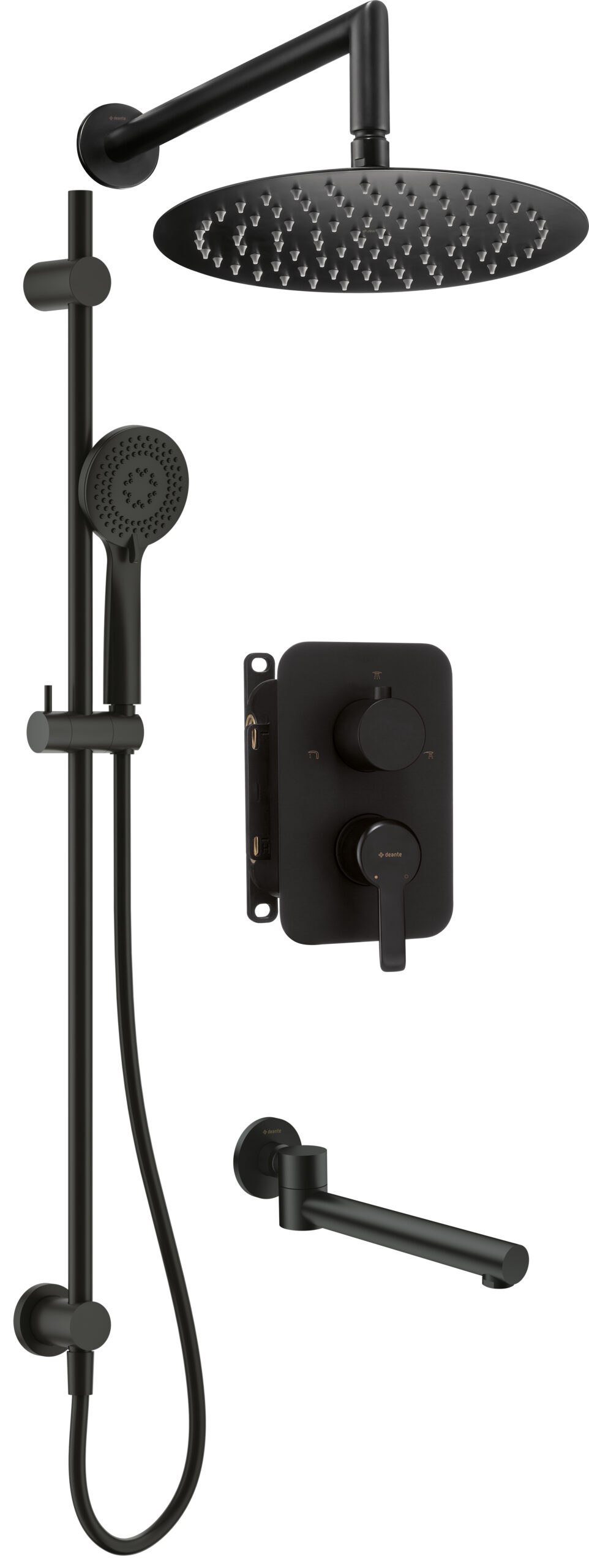 Komplet podtynkowy Arnika składa się z drążka ze słuchawką i głowicą deszczową, ze składanej wylewki oraz z boxa mieszaczowego z przełącznikiem natrysku. Uchwyt słuchawki można przesuwać do dowolnej pozycji. Słuchawka oraz głowica deszczowa wyposażone są w system Anti – calc, ułatwiający czyszczenie ich z osadu i kamienia. Wylewkę można podczas kąpieli złożyć równolegle do ściany. Tym sposobem zyskasz sporo miejsca, a w przypadku małych dzieci, również bezpieczną przestrzeń do zabawy. Komplet wykończony jest w czarnym matowym kolorze, co nadaje mu nowoczesnego i eleganckiego wyglądu, idealnie wpisującego się w trendy aranżacyjne łazienek o minimalistycznym lub industrialnym charakterze.