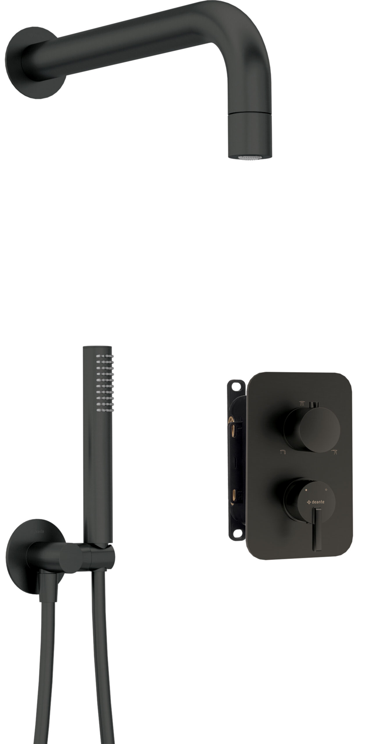 Komplet natryskowy z kolekcji Silia to przykład idealnego połączenia nowoczesnych rozwiązań technologicznych z minimalistycznym designem. Składa się z wylewki z małą głowicą prysznicową, baterii podtynkowej mieszaczowej oraz słuchawki natryskowej z wężem i uchwytem punktowym. Główka natryskowa zapewnia optymalny, stożkowy strumień wody, co gwarantuje wyjątkowy komfort kąpieli. Bateria podtynkowa mieszaczowa z łatwym przełącznikiem umożliwia sprawne przełączenie strumienia wody między słuchawką a wylewką. Dodatkowo, słuchawka prysznicowa wyposażona w system cool-out nie nagrzewa się, zwiększając bezpieczeństwo i komfort, a wąż prysznicowy z systemem anti-twist zapobiega skręcaniu, co podnosi wygodę użytkowania. Montaż podtynkowy gwarantuje estetyczny wygląd i ułatwia utrzymanie w czystości. Całość jest dopracowaną kompozycją w czarnym, matowym wykończeniu, która wpisuje się w nowoczesne wnętrza łazienkowe, łącząc w sobie elegancję i funkcjonalność.
