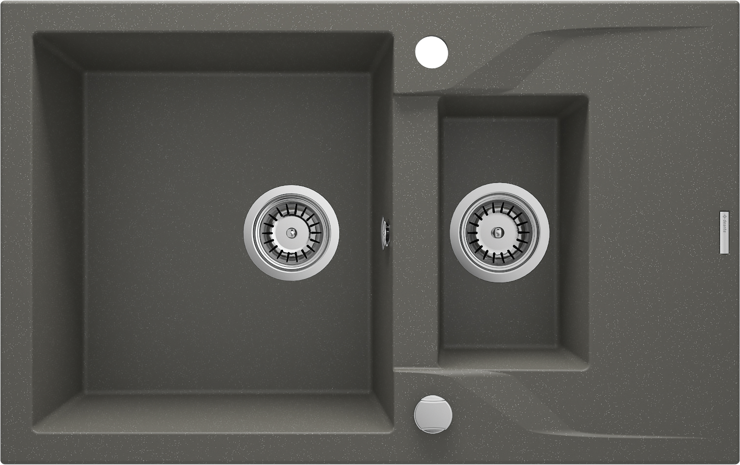 Zlewozmywak granitowy Andante to oryginalne połączenie dużej komory o wysokiej pojemności z mniejszą o wielofunkcyjnym zastosowaniu. Główna przegroda bez trudu mieści różnorodne elementy zastawy czy blachy do pieczenia, co usprawnia i znacząco przyspiesza proces mycia naczyń. W tym samym czasie mniejsza komora może pełnić rolę pojemnika na sztućce lub osobno wydzielonej przestrzeni do płukania warzyw i owoców. Zlewozmywak granitowy Andante bez wątpienia przypadnie do gustu miłośnikom kreatywnych i praktycznych rozwiązań. Funkcjonalne komory uzupełnia praktyczny ociekacz, który pomaga w oszczędnym osuszaniu naczyń. Ponadto granitowy zlewozmywak Andante wyróżnia się także wyjątkowym osprzętem z automatycznym zamknięciem odpływu oraz syfonem oszczędzającym miejsce Space-Saver.