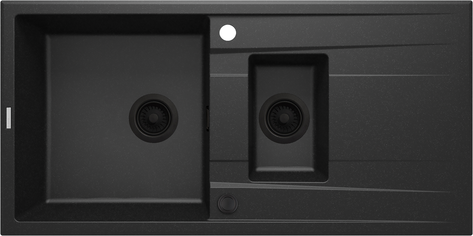 Zlewozmywak 1,5-komorowy Eridan z jedną przestronną komorą, drugą mniejszą i ociekaczem, to produkt, który doskonale sprawdzi się w dużych kuchniach i który zachwyci Cię swoją funkcjonalnością, wytrzymałością i designem. Zaprojektowany z myślą o maksymalnym wykorzystaniu przestrzeni, zaskoczy Cię pojemnością i pomieści więcej niż standardowe zlewy o tych samych gabarytach zewnętrznych. Dzięki wąskiej i niskiej krawędzi zlewozmywaki Eridan doskonale wtapiają się w blat, stając się dyskretnymi bohaterami drugiego planu. Elegancki, grafitowy odcień z połyskującymi drobinkami aluminium świetnie sprawdzi się w kuchniach o stylistyce minimalistycznej i skandynawskiej jak i w tych klasycznych, współgrając z ciemnymi blatami lub kontrastując z jasnym kamieniem, kompozytem lub drewnem. Zlewozmywaki granitowe Deante charakteryzują się ponadto wieloma cechami, wynikającymi z zastosowania najwyższej jakości naturalnego materiału. Powierzchnia jest nie tylko trwała, odporna na przebarwienia, wysoką temperaturę (do 250°C), szok termiczny i uderzenia, ale także odpycha cząsteczki płynów i nie przyjmuje zapachów.