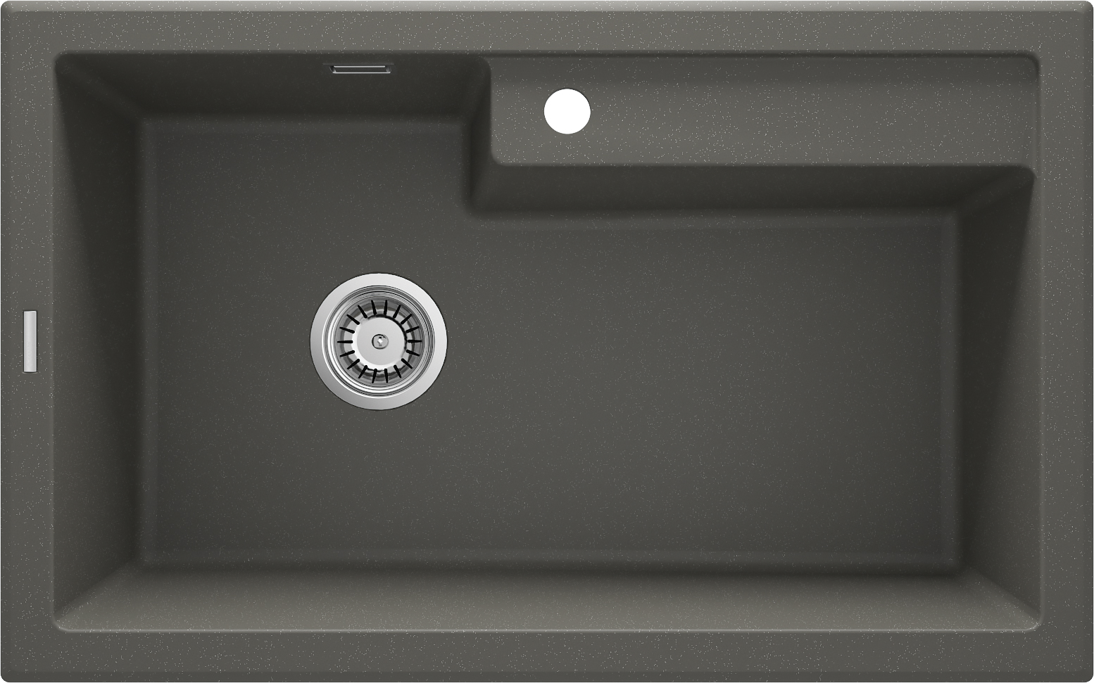 Zlewozmywak Eridan z jedną dużą, głęboką komorą, to produkt o nowoczesnym, przyciągającym wzrok kształcie, który sprawdzi się w kuchniach urządzonych zarówno w skandynawskim, industrialnym, jak i minimalistycznym stylu. Zlewozmywaki granitowe Deante charakteryzują się wieloma praktycznymi cechami, wynikającymi z zastosowania najwyższej jakości materiału naturalnego pochodzenia. Granitowa powierzchnia jest nie tylko trwała, odporna na ścieranie, przebarwienia, wysoką temperaturę i uderzenia, ale także odpycha cząsteczki płynów, dzięki czemu resztki soku, kawy czy herbaty szybciej spływają. Granitowa powierzchnia nie przyjmuje także żadnych zapachów, jest odporna na szok termiczny (w związku z czym niestraszna jej gorąca woda z odcedzania makaronów czy wrzątek z czajnika), a do tego ma właściwości antyseptyczne. Znajdujący się w zestawie syfon Spacesaver z możliwością podłączenia do zmywarki, zaprojektowany został tak, by zajmował nawet 50% mniej miejsca niż standardowe syfony. Prezentowany tu obszerny, wygodny, jednokomorowy zlew w antracytowym kolorze, pasuje do szafki o szerokości 80 cm i charakteryzuje się automatycznym zamknięciem odpływu, przelewem, fabrycznym otworem na baterię oraz montażem poprzez wpuszczenie w kuchenny blat.