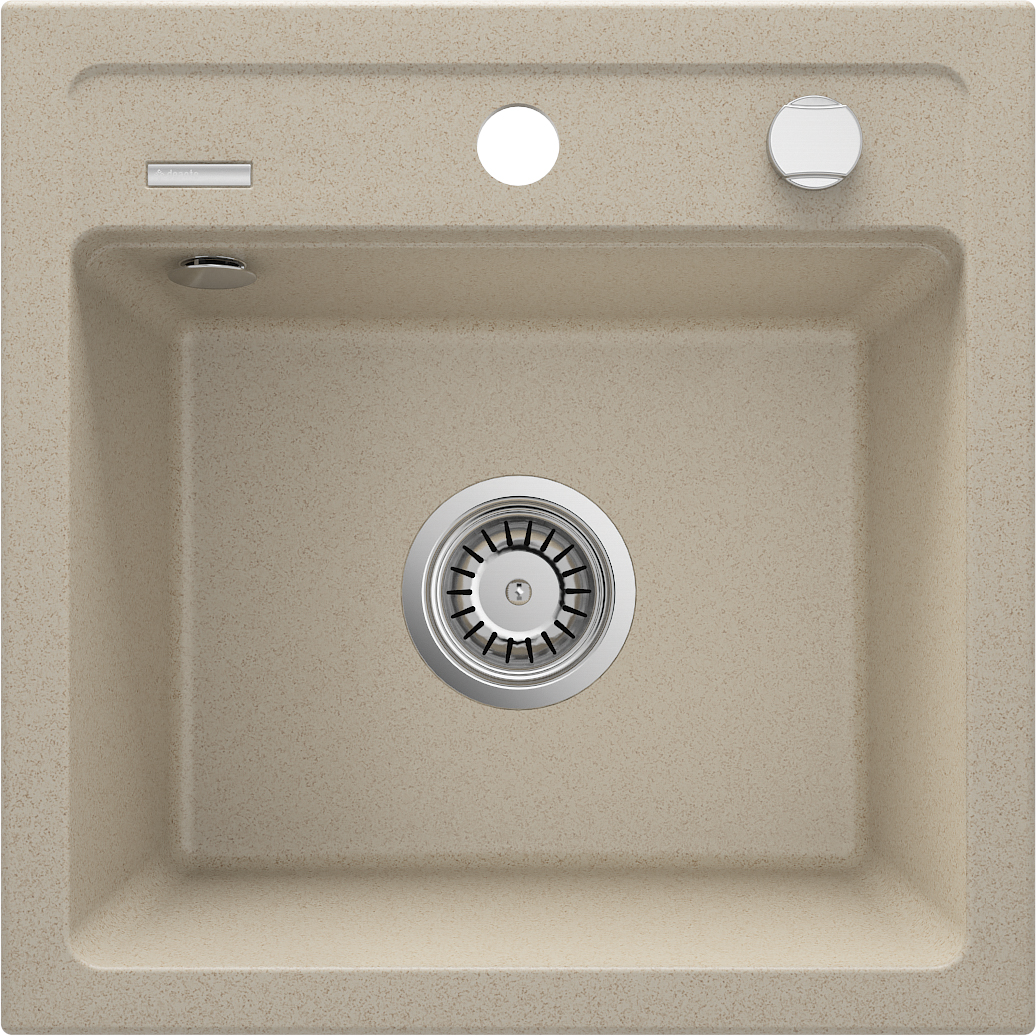 Piaskowy, granitowy zlewozmywak 1-komorowy Zorba z jedną przestronną, prostopadłościenną komorą to produkt, który doskonale prezentować się będzie w klasycznych lub rustykalnych aranżacjach kuchni. Ciepły, piaskowy odcień akcesorium będzie efektownie kontrastować z drewnianym blatem bądź idealnie wtopi się w przestrzeń roboczą kuchni, zaaranżowaną za pomocą jasnego kamienia lub kompozytu. Prezentowany tu zlewozmywak wykonany został z granitu i charakteryzuje się wszystkimi zaletami typowymi dla tego niezwykle twardego i odpornego na użytkowanie materiału. Należy do nich odporność na przebarwienia, zarysowania, szok termiczny, temperaturę 250 stopni, jak i uderzenia. Ponadto zlewy z kolekcji posiadają właściwości hydrofobowe, co oznacza, że ich powierzchnia nie tylko nie przepuszcza cząsteczek wody, ale także je odpycha, dzięki czemu są dużo łatwiejsze do utrzymania w czystości. Wszystkie te zalety, jak również współczesny, ascetyczny design, eleganckie kolory i uniwersalny charakter sprawiły, że kolekcja zlewozmywaków Zorba wyróżniona została tytułem finalisty konkursu Dobry Wzór 2014 r.