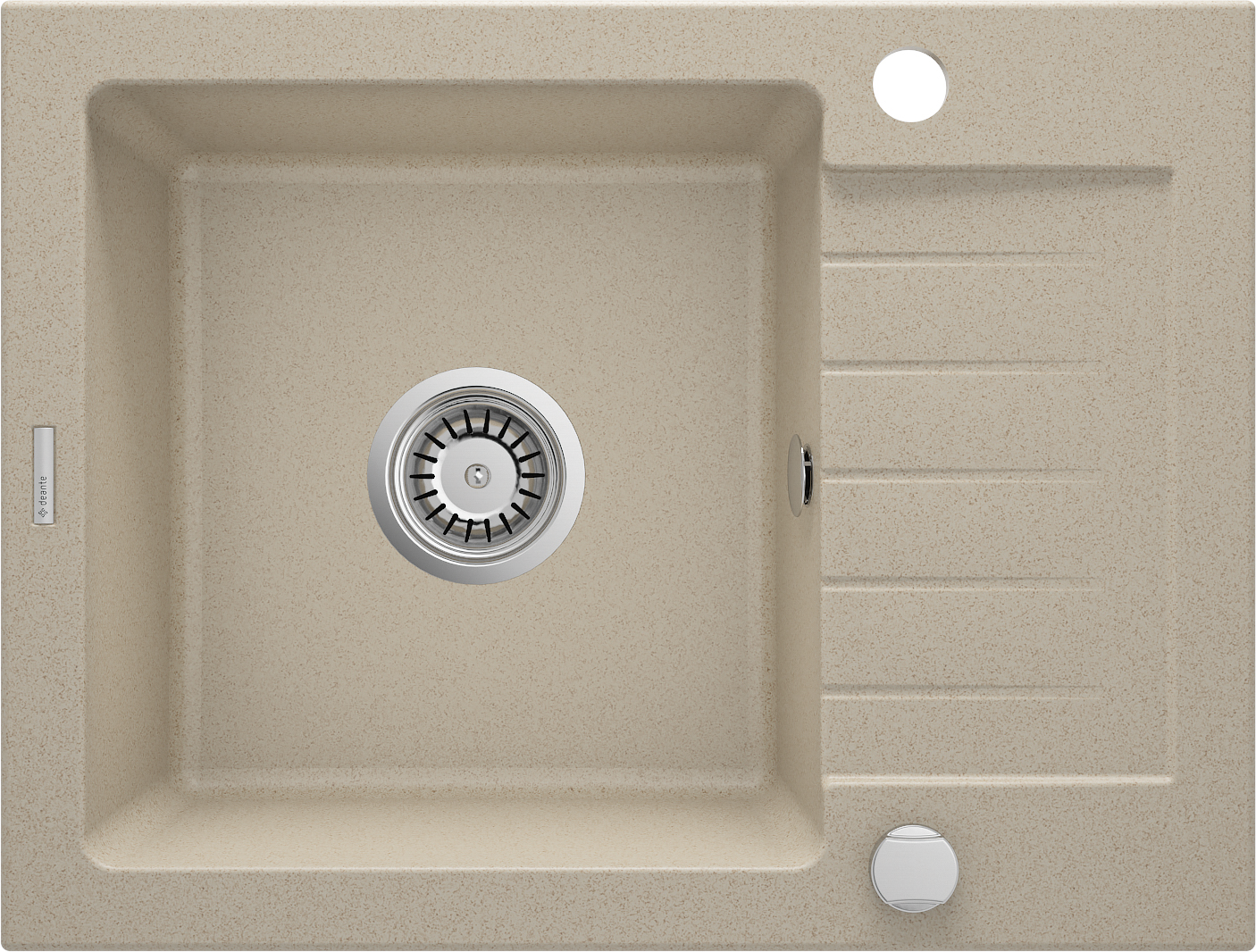 Piaskowy, granitowy zlewozmywak 1-komorowy Zorba z jedną przestronną, prostopadłościenną komorą i krótkim ociekaczem to produkt, który doskonale prezentować się będzie w klasycznych lub rustykalnych aranżacjach kuchni. Ciepły, piaskowy odcień akcesorium będzie efektownie kontrastować z drewnianym blatem bądź idealnie wtopi się w przestrzeń roboczą kuchni, zaaranżowaną za pomocą jasnego kamienia lub kompozytu. Prezentowany tu zlewozmywak z ociekaczem wykonany został z granitu i charakteryzuje się wszystkimi zaletami typowymi dla tego niezwykle twardego i odpornego na użytkowanie materiału. Należy do nich odporność na przebarwienia, zarysowania, szok termiczny, temperaturę 250 stopni, jak i uderzenia. Ponadto zlewy z kolekcji posiadają właściwości hydrofobowe, co oznacza, że ich powierzchnia nie tylko nie przepuszcza cząsteczek wody, ale także je odpycha, dzięki czemu są dużo łatwiejsze do utrzymania w czystości. Wszystkie te zalety, jak również współczesny, ascetyczny design, eleganckie kolory i uniwersalny charakter sprawiły, że kolekcja zlewozmywaków Zorba wyróżniona została tytułem finalisty konkursu Dobry Wzór 2014 r.