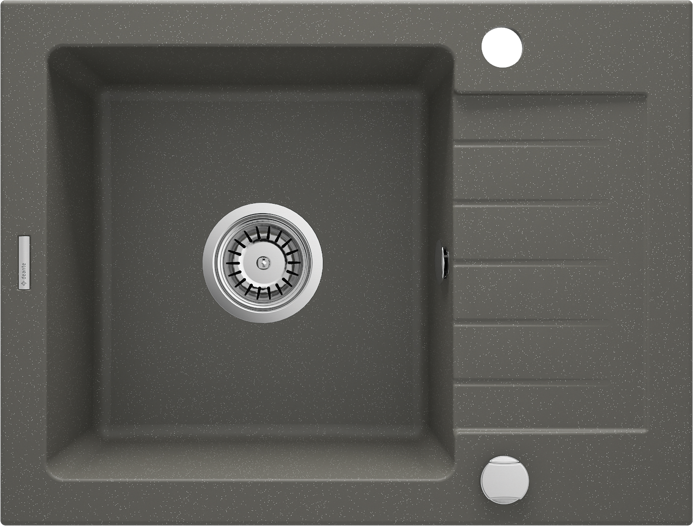 Zlewozmywak Zorba wykonany został z trwałego granitu, odpornego na uderzenia, wysoką temperaturę i szok termiczny – zgodnie z normą europejską PN-EN 13310. To model odwracalny, może być montowany z ociekaczem po prawej lub lewej stronie. Zlewozmywak wykończony jest w modnym antracytowym kolorze, z metalicznymi drobinkami. W zestawie znajduje się korek automatyczny oraz syfon oszczędzający miejsce Space-saver. Do modelu Zorba możesz dokupić haczyk na gąbkę oraz reling na ściereczkę, które dostępne w ofercie Deante.