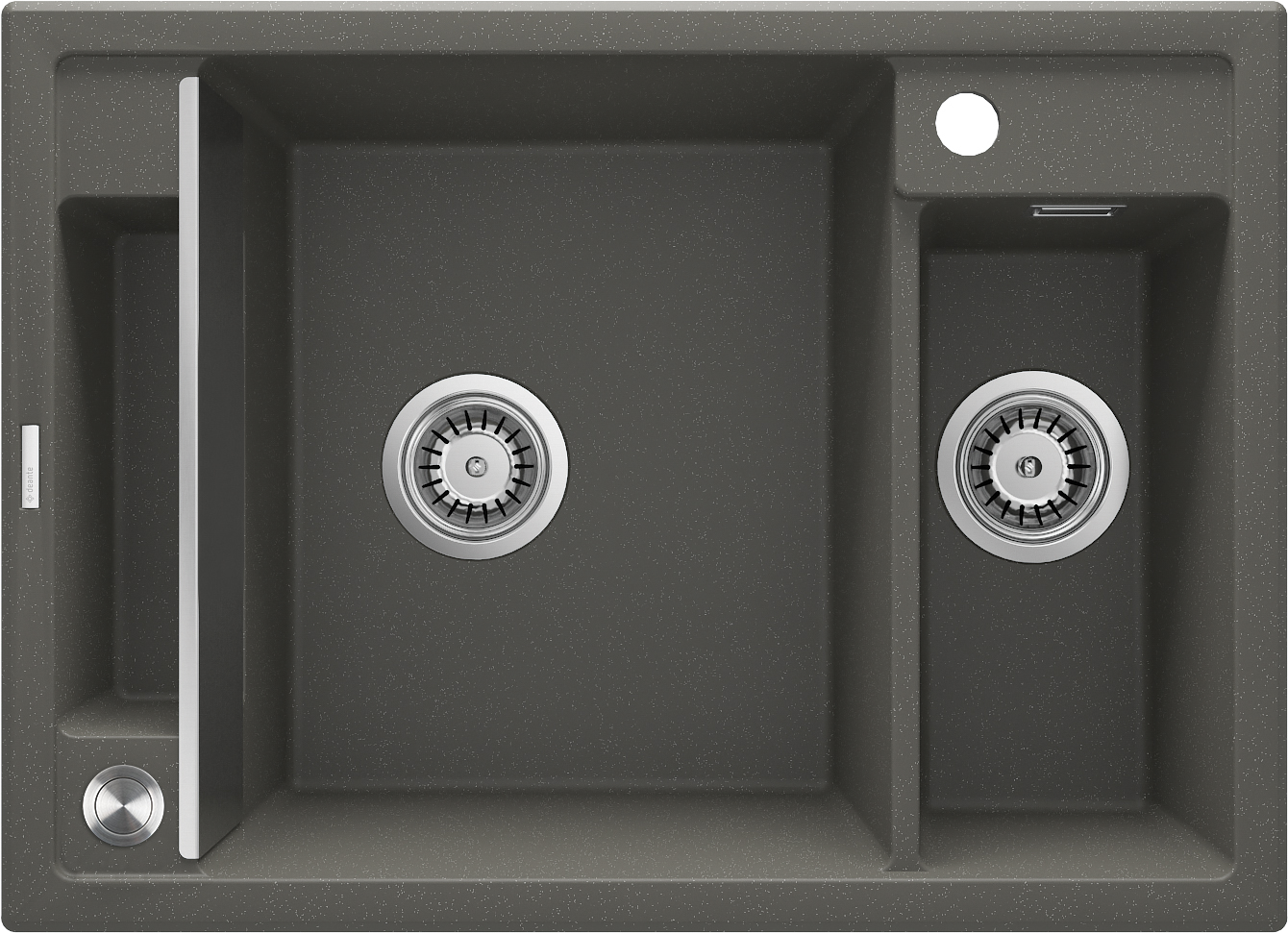 Granitowy 1,5-komorowy zlewozmywak Magnetic w eleganckim, stonowanym, antracytowym kolorze o metalicznym wykończeniu, doskonale pasującym do minimalistycznych, industrialnych lub skandynawskich kuchni, to nowoczesny zlew o magnetycznych właściwościach, na pierwszy rzut oka niewidocznych dla użytkownika. Zlewozmywaki z autorskiej kolekcji Magnetic wyposażone zostały w magnesy, dzięki którym na bok komory nałożyć można stalową maskownicę. Elegancka maskownica oddziela komorę od bocznej półki, tworząc dodatkową przestrzeń, która zwiększa funkcjonalność zlewu i pozwala na opcjonalne wyposażenie go w dedykowane akcesoria z kolekcji – higieniczne uchwyty na ściereczkę i zmywak kuchenny czy praktyczne koszyki z ociekaczem. Wpuszczany w blat zlewozmywak ma jedną przestronną i drugą mniejszą komorę, charakteryzuje się wszystkimi zaletami typowymi dla tego niezwykle twardego i odpornego na użytkowanie materiału, a nieoczywisty, antracytowy, metaliczny kolor doskonale pasować będzie do baterii kuchennej w tym samym kolorze oraz drewnianych lub kamiennych blatów.