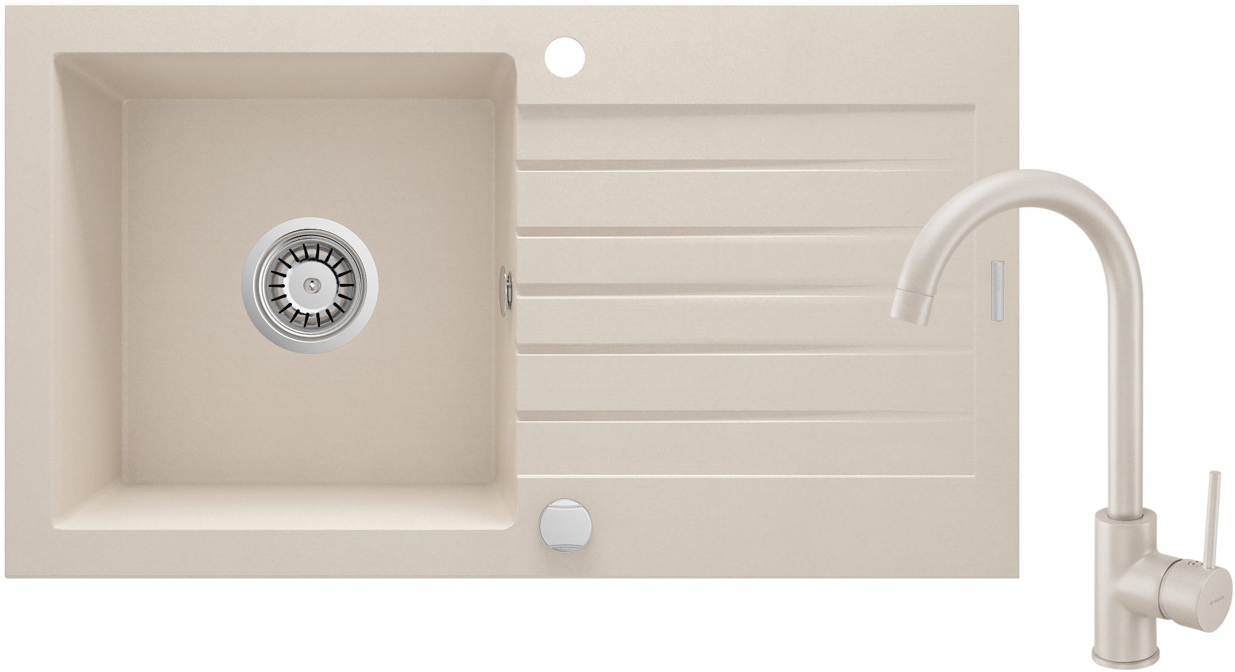 Zlewozmywak granitowy z baterią stanowi unikalne połączenie wysokiej funkcjonalności i pięknego wyglądu. Ciepły beż doskonale rozświetli każdą kuchnię i wpasuje się do wnętrz zarówno bardziej tradycyjnych, jak i nowoczesnych. Produkt powstaje z naturalnego kompozytu granitowego o najwyższej jakości potwierdzonej licznymi badaniami ekspertów Deante. Materiał ten charakteryzuje się dużą odpornością na przebarwienia, szok termiczny, uderzenia i wilgoć – zgodnie z normą europejską PN-EN 13310. W zestawie znajduje się także bateria w tym samym odcieniu, co razem tworzy spójną całość. Wygodna wylewka zaopatrzona jest w aerator, który napowietrza strumień. Za jego sprawą przepływ zostaje znacząco zmniejszony, co zapobiega marnotrawieniu wody, przy takim samym komforcie zmywania. Zlewozmywak granitowy z baterią to inwestycja w doskonałą wytrzymałość.